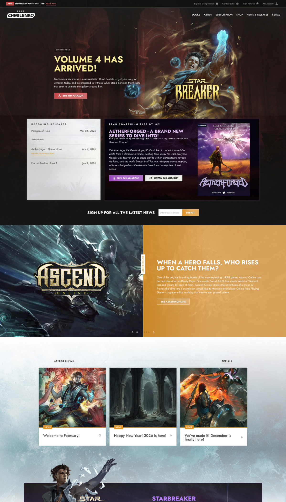 I had the opportunity to collaborate with Luke Chmilenko, a renowned author in the LitRPG genre, to rebuild his web presence, and give him a new face to carry him forward as he continues to generate popularity with his writings. He needed a visual presence that reflected his space and increasing notoriety, as well as a website platform and structure to help him scale this as time continued forward.