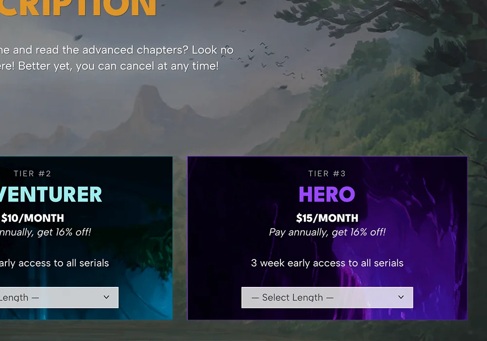 This required a set of functionality that would allow all of his series to be listed with detailed information, books, and how to buy, as well as marketed and presentable for new readers. It also needed to act as an initial landing pad for his baseline subscription service, where users could subscribe monthly to view serial-based content releases.